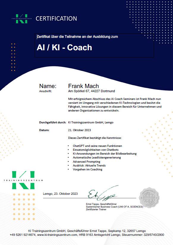 In 2025 findet bereits die zweite Ausbildung zum AI/KI Consultant statt.